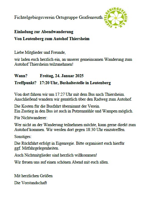 | Fr. 24.01. | Abendwanderung von Leutenberg zum Autohof Thiersheim (Flyer jpg) |