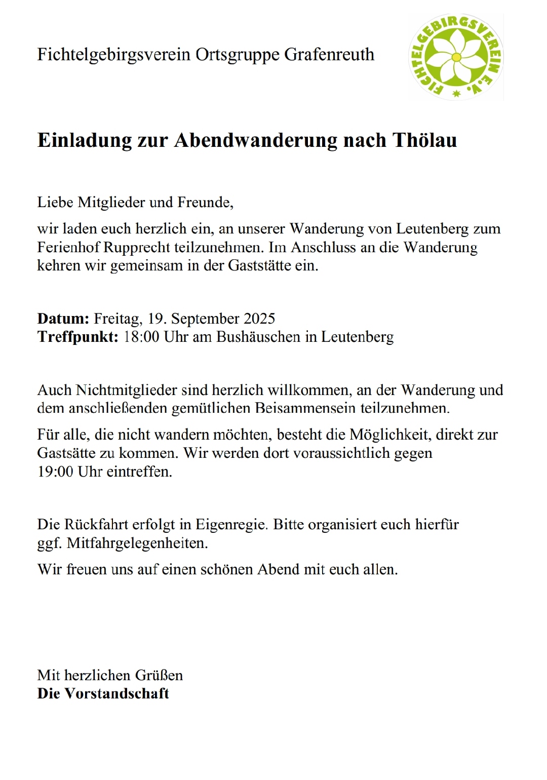 | Fr. 19.09 | Herbstwanderung nach Thölau mit anschließender Einkehr im Ferienhof Rupprecht (Flyer.jpg) |